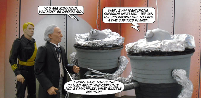 It certainly did. Oh my goodness, how time has flown! I do still love it. I get a real buzz when I create a striking image, come up with a very Doctor-y line or think up a surprising resolution to a story. It’s a great feeling when people email you and say “wow, I loved that story, the ending was so unexpected!”. Like when the Trods first appeared on the site. The whole first part was geared to make you think the Daleks were fighting the Cybermen then the last frame shows these funny homemade robots. That got so many great comments. Another wonderful compliment is when people can ‘hear’ a Doctor’s voice. A lot of that comes from the superb likeness of the CO figures but a well chosen line can make help to evoke a particular Doctor’s way of speaking.