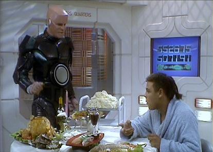 Rimmer: Have you ever been in a dissection class and held up a frog by its head? You know the way its belly sort of sticks out above its spindly little legs? Well, that’s the picture I see when you get down from the bunk in the morning.