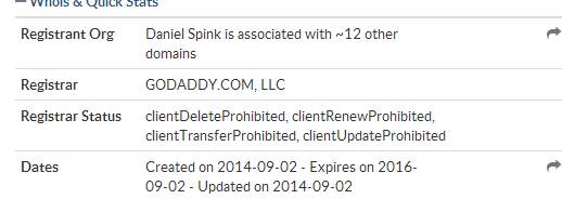The most recent registration, this domain was made back in 2013 and doesn’t expire until 2015. It was last updated in 2013.